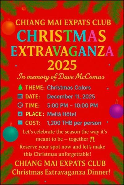 The Chiang Mai Expats Club (CEC) publishes various types of information for the purpose of helping fellow expats become acclimated and thrive in Chiang Mai. While we try to keep such information current and accurate, we do not have sufficient resources to provide assurance as to timeliness and accuracy. We advise members to confirm the information for themselves.To contact us - Email: info@chiangmaiexpatsclub.com which is the preferred method of communication. ©2025 Chiang Mai Expat Club | Chiang Mai Expats Club,